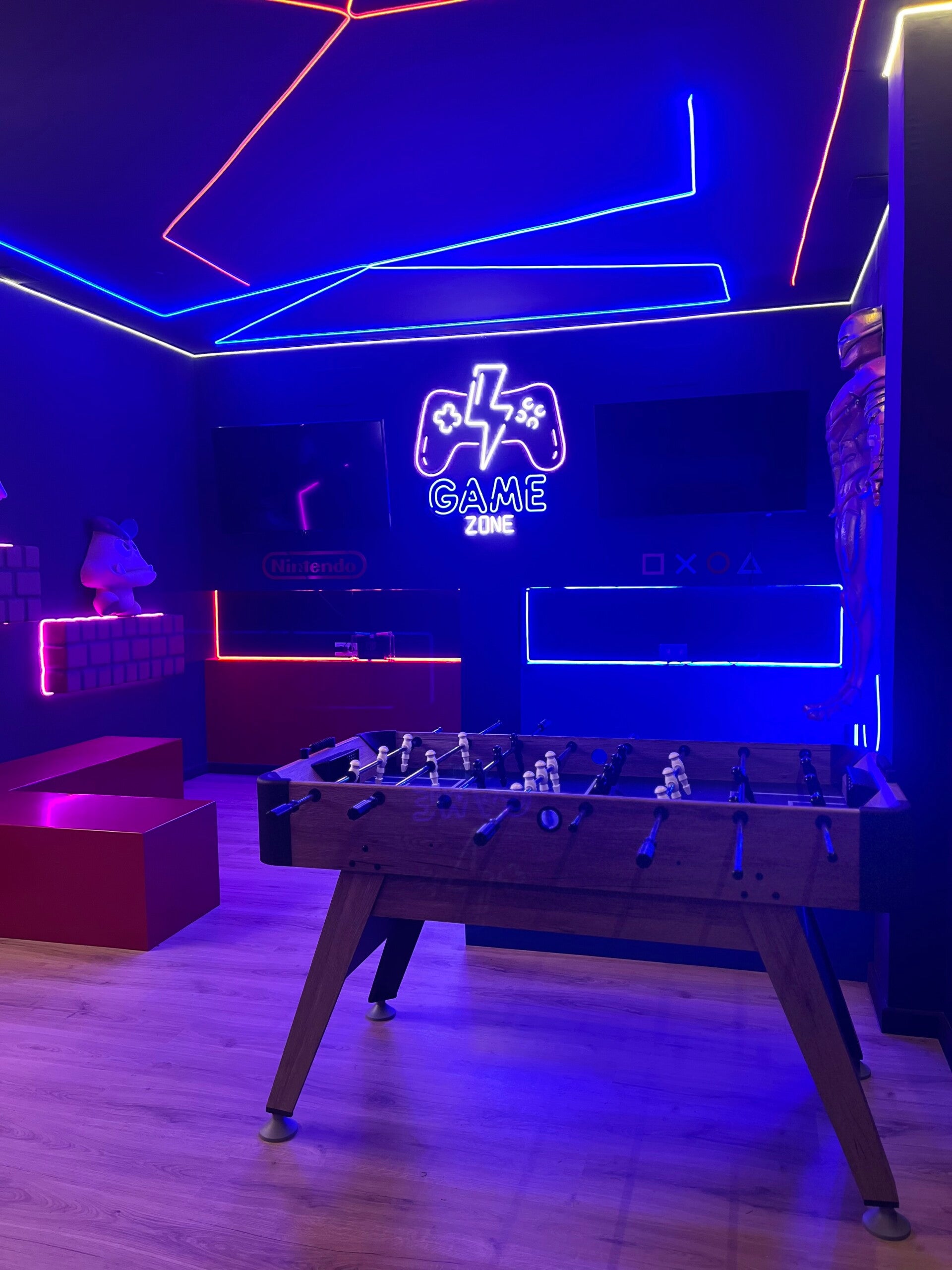 - Zona Gamer: espacio tematizado con personajes de videojuegos y superhéroes, PS5 + Nintendo Switch, futbolín y máquina ARCADE para los más ochen/noventeros con + de 2500 juegos, TECNOLOGÍA!
